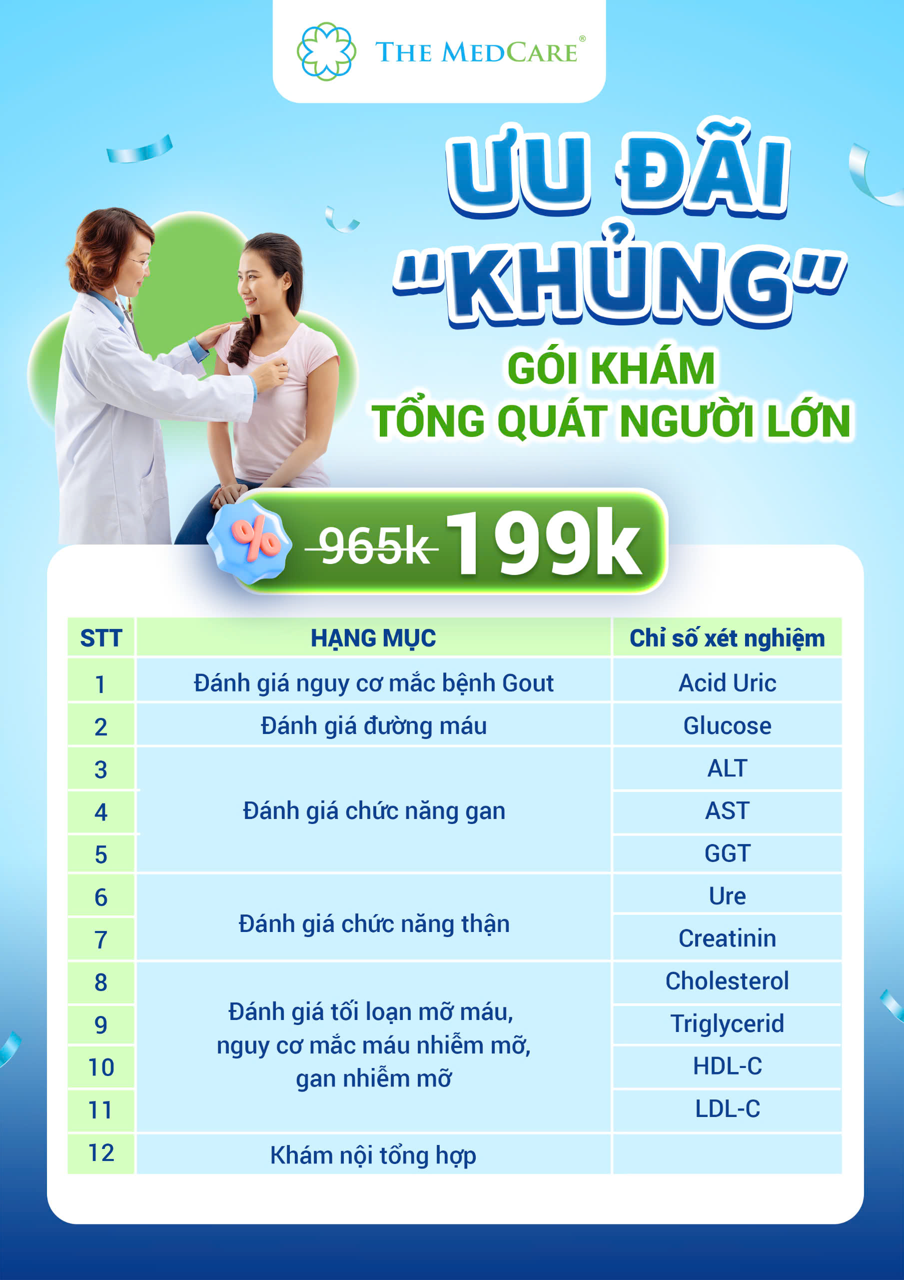 Tiết kiệm ngay 766K so với giá gói gốc, nhanh tay đăng ký vì chỉ có 100 gói cho 100 khách hàng người lớn đầu tiên tại The MedCare Quảng Ninh!