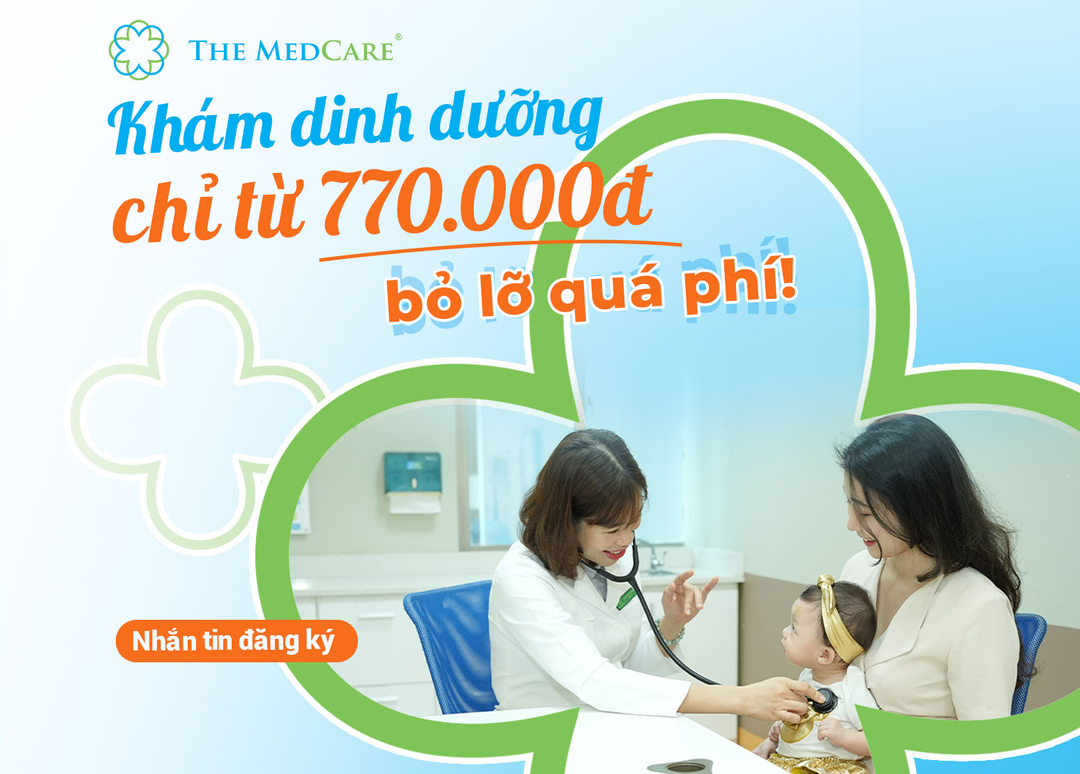 KHÁM DINH DƯỠNG CHỈ TỪ 770.000Đ, BỎ LỠ QUÁ PHÍ Chỉ với từ 770.000đ (giá sau giảm 30%), bé đã có thể được làm đầy đủ các xét nghiệm vi chất, các chỉ số liên quan tới máu – nước tiểu, khám và tư vấn dinh dưỡng tại The Medcare. Tuỳ vào từng loại gói khám, mẹ