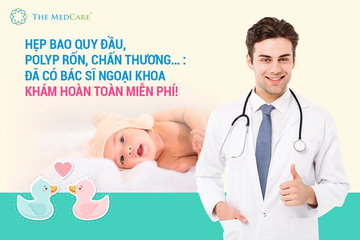 HẸP BAO QUY ĐẦU, POLYP RỐN, CHẤN THƯƠNG… ĐÃ CÓ BÁC SĨ NGOẠI KHOA KHÁM MIỄN PHÍ Vừa tiết kiệm được 200.000đ, vừa hưởng thêm sự tư vấn tận tình và chăm sóc chu đáo nhất, còn gì bằng phải không ba mẹ? Ưu đãi này áp dụng với 5 BÉ ĐĂNG KÝ KHÁM NGOẠI