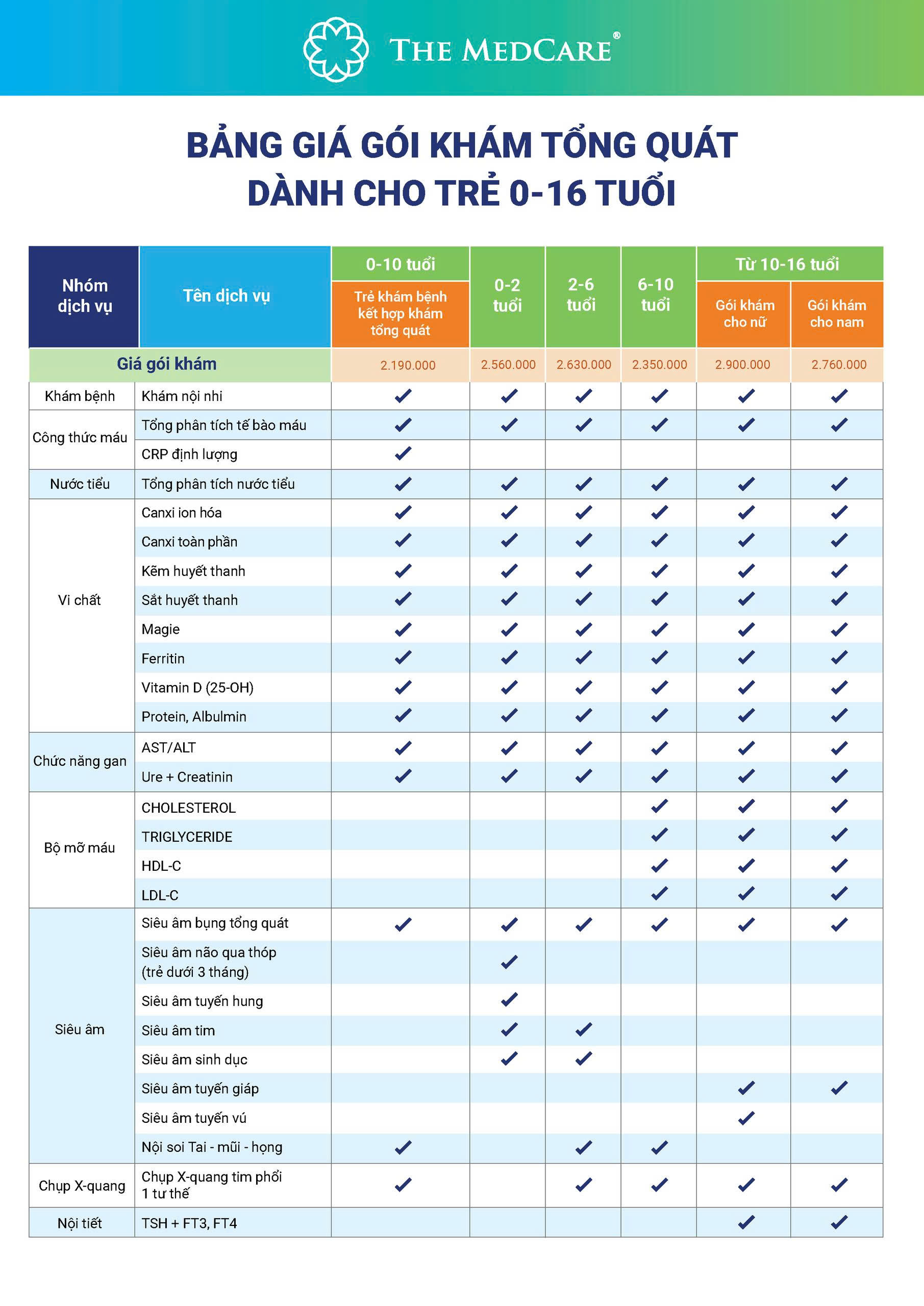GÓI KHÁM TỔNG QUÁT 0-18 TUỔI