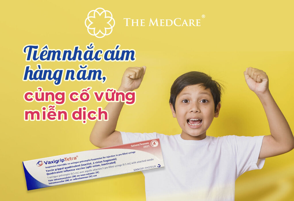 The Medcare hiện đang có sẵn vắc xin cúm Vaxigrip Tetra của Pháp, phòng 4 chủng virus cúm cho cả trẻ nhỏ và người lớn, giá 390.000đ/ mũi (miễn phí khám sàng lọc trước tiêm).
