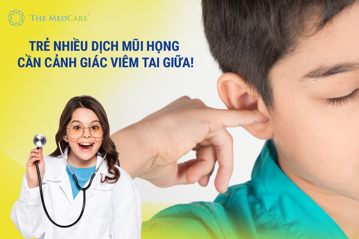 TRẺ NHIỀU DỊCH MŨI HỌNG CẦN CẢNH GIÁC VIÊM TAI GIỮA Trẻ dễ mắc viêm tai giữa nhất là trong các đợt viêm mũi họng, viêm VA, viêm amidan… do vi trùng xâm nhập vào tai giữa thông qua vòi nhĩ, dịch mủ tiết ra từ tai giữa bị tắc vào bên trong gây